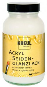 Da brillo y protección. Es al disolvente. Bastante resistente y de aplicación general en manualidades. Este espray lo recomendamos para figuras de decoración y manualidades con brillo.